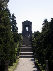 Постављен је на врху заравњеног брега, са дугим приступним стазама које воде до два улаза у гробницу. Грађен је од црног јабланичког гранита, конципиран у облику маузолеја, у класичној форми увећаног саркофага на постаменту од шест степеника. Са обе стране улаза постављене су по четири гранитне каријатиде – фигуре жена у народним ношњама југословенских народа, изведене без реалистичког наглашавања фолклорних елемената. Пејзаж, архитектура и скулптура подређени су основној идеји како би се нагласила монументалност, репрезентативност и симболика, у складу са наменом споменика као симболичног места одавања почасти свим ратницима палим за слободу на овим просторима.