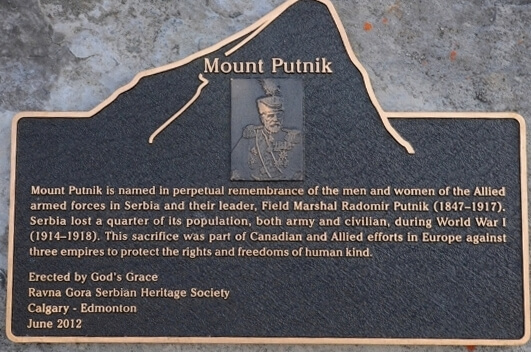 У знак почасти према начелнику Врховне команде српске војске Радомиру Путнику, Канађани су планину по његовом имену назвали још 1918. године.
