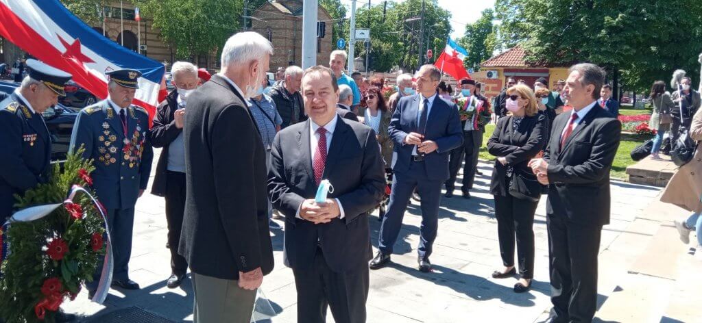 Након полагања венаца у пријатељском разговору и Иван Стратимировић, Слободанка Беговић, председник ОО Савеза на Врачару и Ранка Шобота са председником Скупштине Републике Србије Ивицом Дачићем