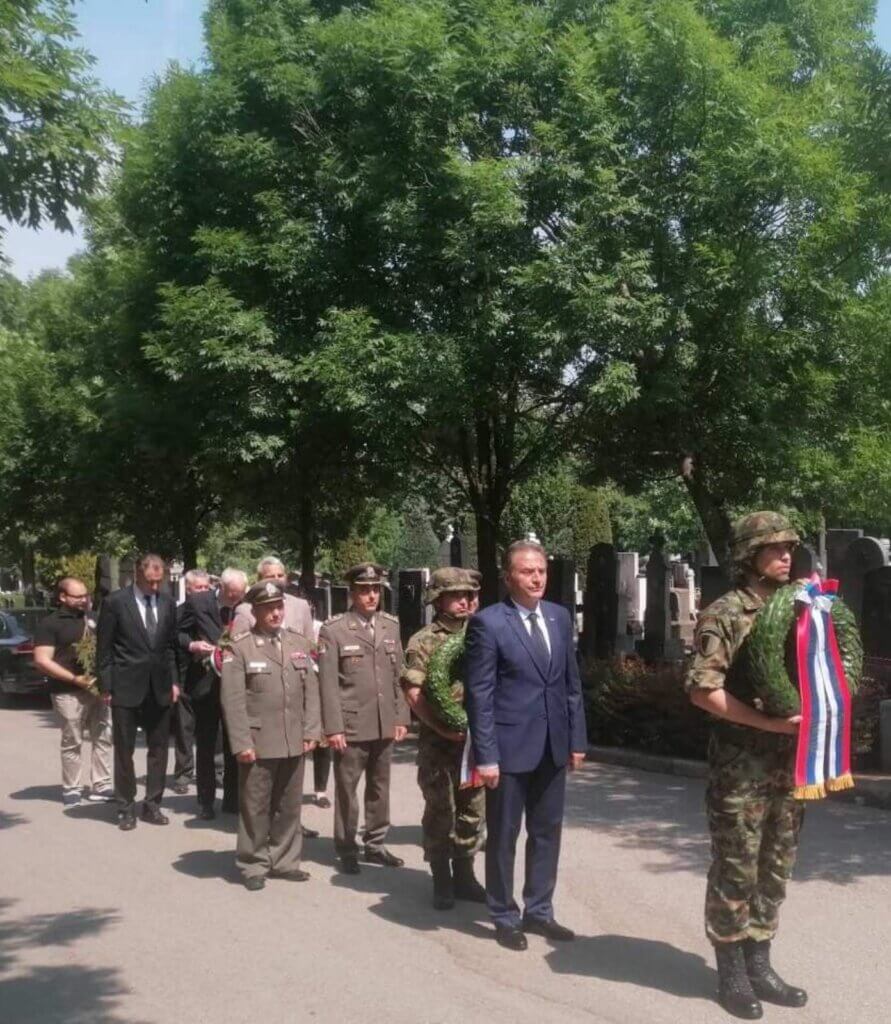 Државни секретар Сектора за борачко-инвалидску заштиту Миодраг Капор, делегација војске РС, испред Скупштине Града Београда, венац је положио Андреја Младеновић а испред нашег Савеза цвеће су положили: Иван Стратимировић, Мирјана Лукић и Џон Боснић.