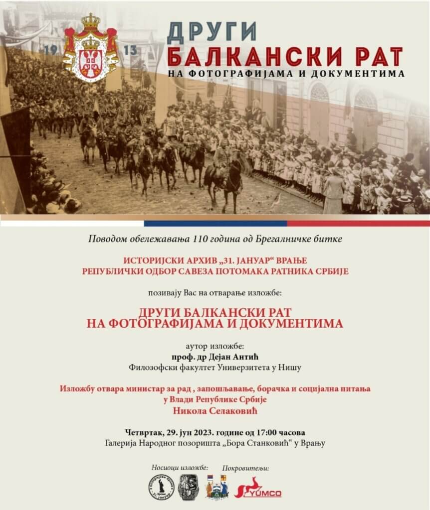 У повратку са учешћа у церемонији наша делегација ће присуствовати отварању изложбе „Други балкански рат“ аутора др Дејана Антића председника Регионалног одбора Савеза потомака за Јужну Србију у организацији Историјског архива „31. јануар“ у Врању и Републичког одбора Савеза потомака ратника Србије 1912-1920.