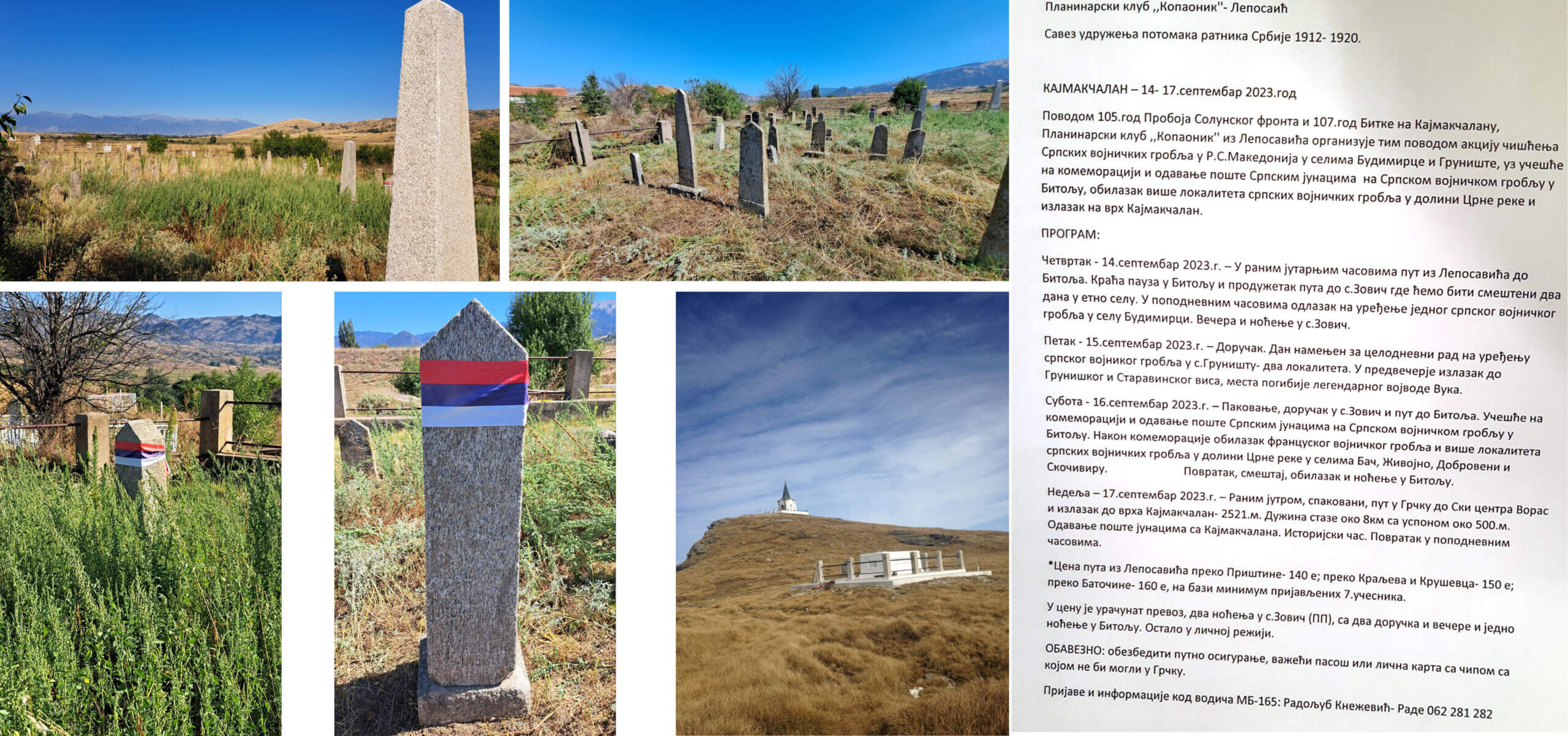 Испред нашег савеза бићемо у суботу на комеморацији на Српском војничком гробљу у Битољу а у недељу на врху Кајмакчалана, некад кота 2525 а данас 2521. Кота је смањена 4 метра услед силине гранатирања при освајању самог врха.