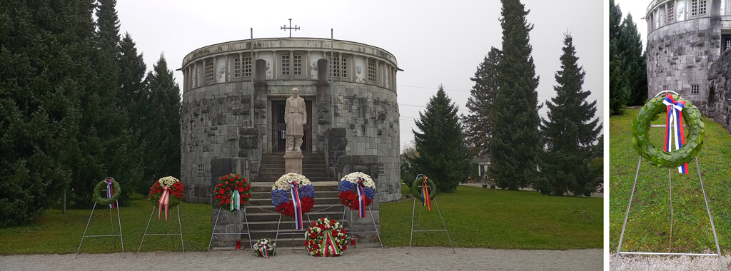 Спомен костурница палих ратника – жртава Великог рата на централном гробљу Жале у Љубљани, где су 10. новембра 2024. године венце положиле делегације Амбасаде Републике Србије у Словенији, представници амбасада Аустрије, Румуније, Италије, Мађарске, као и представници Града Љубљана и високих државних органа Републике Словеније, поводом Дана примирја у Великом рату.