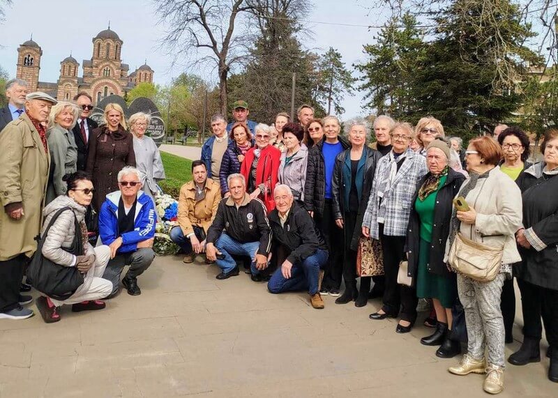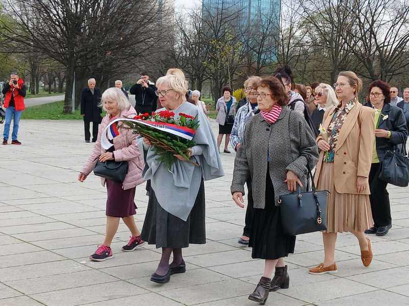 На Ушћу код споменика Вечна Ватра цвеће полажу Слободанка Беговић, Здрава Бојанић и Ана Јанић наш дугогодишњи члан са пуних 90 година.