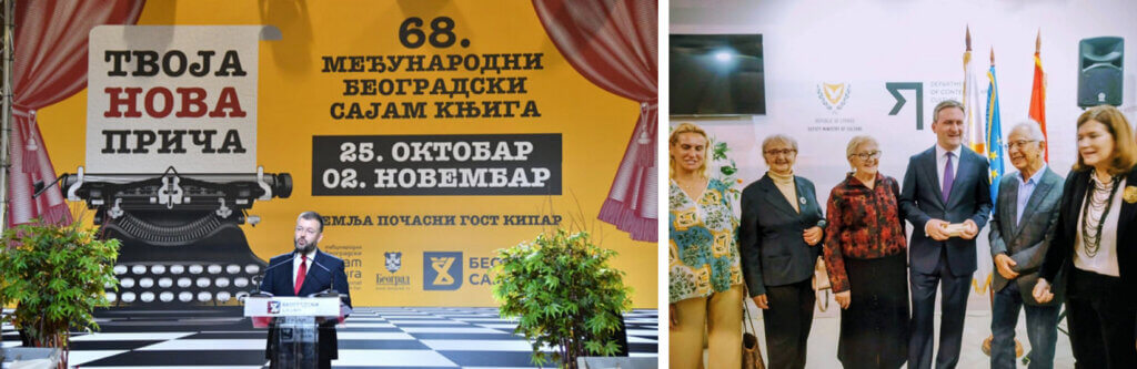 Ове године почасни гост 68. Међународног Београдског Сајма књига била је Република Кипар. На слици госпођа Василики Касианиду, министар културе Кипра, господин Кирјакос Хараламбидис, познати писац, Никола Селаковић министар културе Србије и чланови Савеза потомака ратника Србије 1912-1920. Слободанка Беговић, Рада Миличић и Божица Велоусис на свечаном отварању.