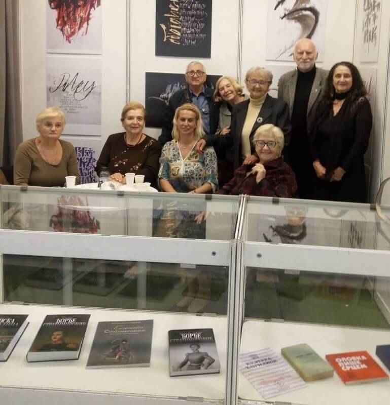 Чланови Савеза на простору Удружења грађана КУЛТУРА ЋИРИЛИЦЕ у Хали 1, где су приказани радови најбољих српских калиграфа, који су летос представљали калиграфију српске ћирилице на изложби у Пекингу.